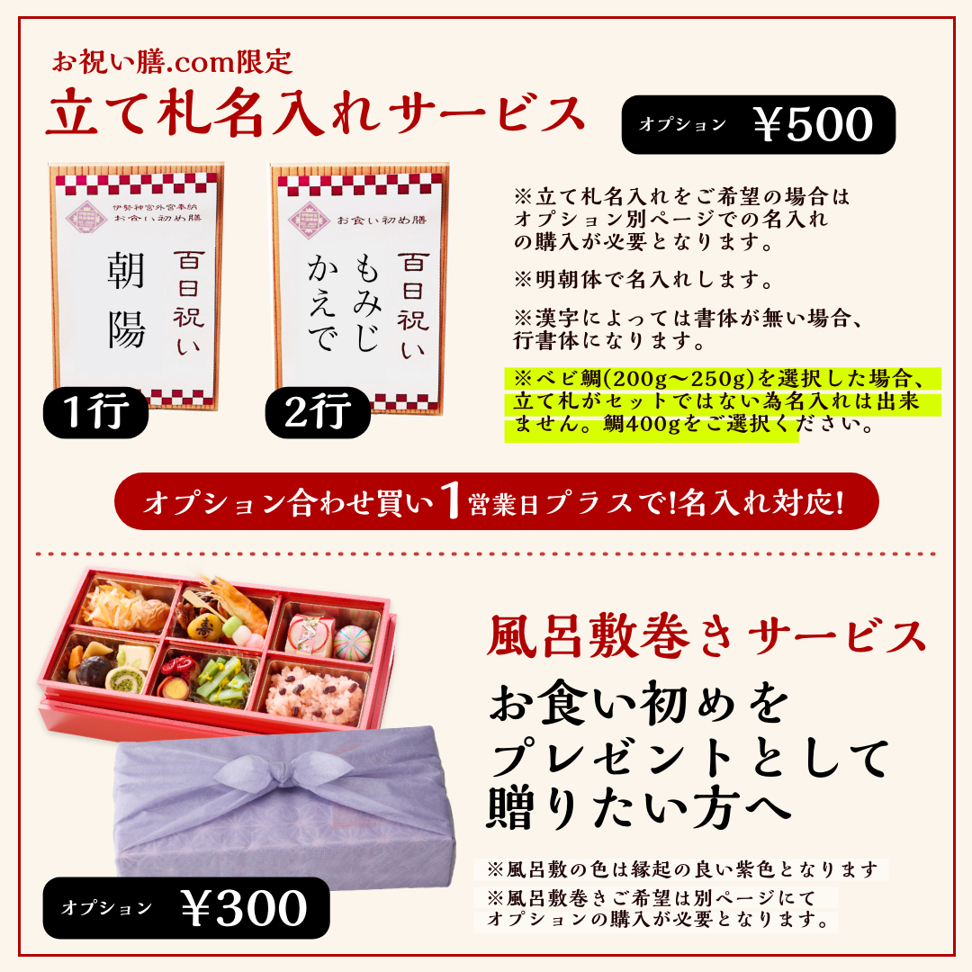 お赤飯やお吸い物は、オプションで追加購入が可能です。