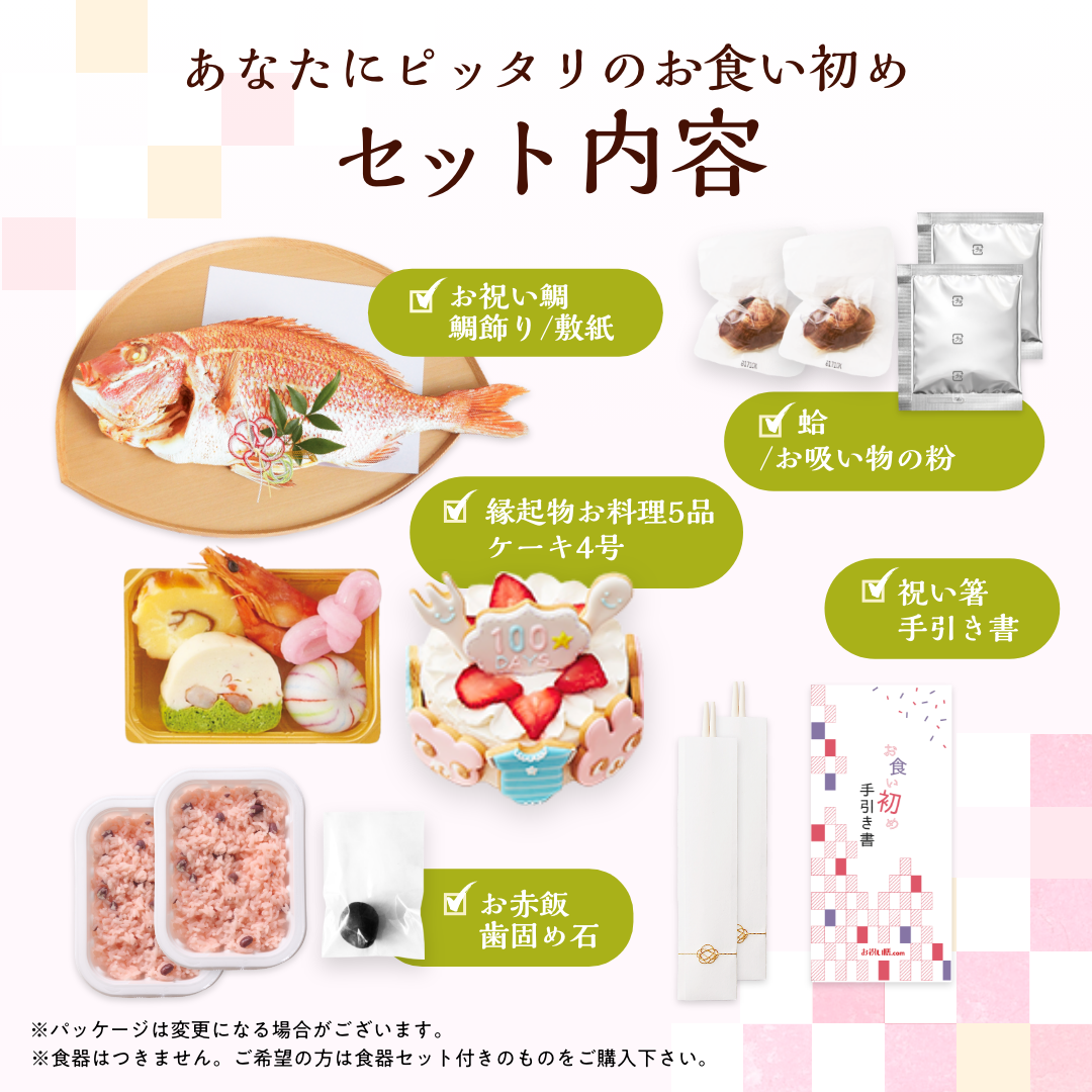 儀式の手順などを詳しく解説した手引き書付きで、初めてのお食い初めでも安心です。