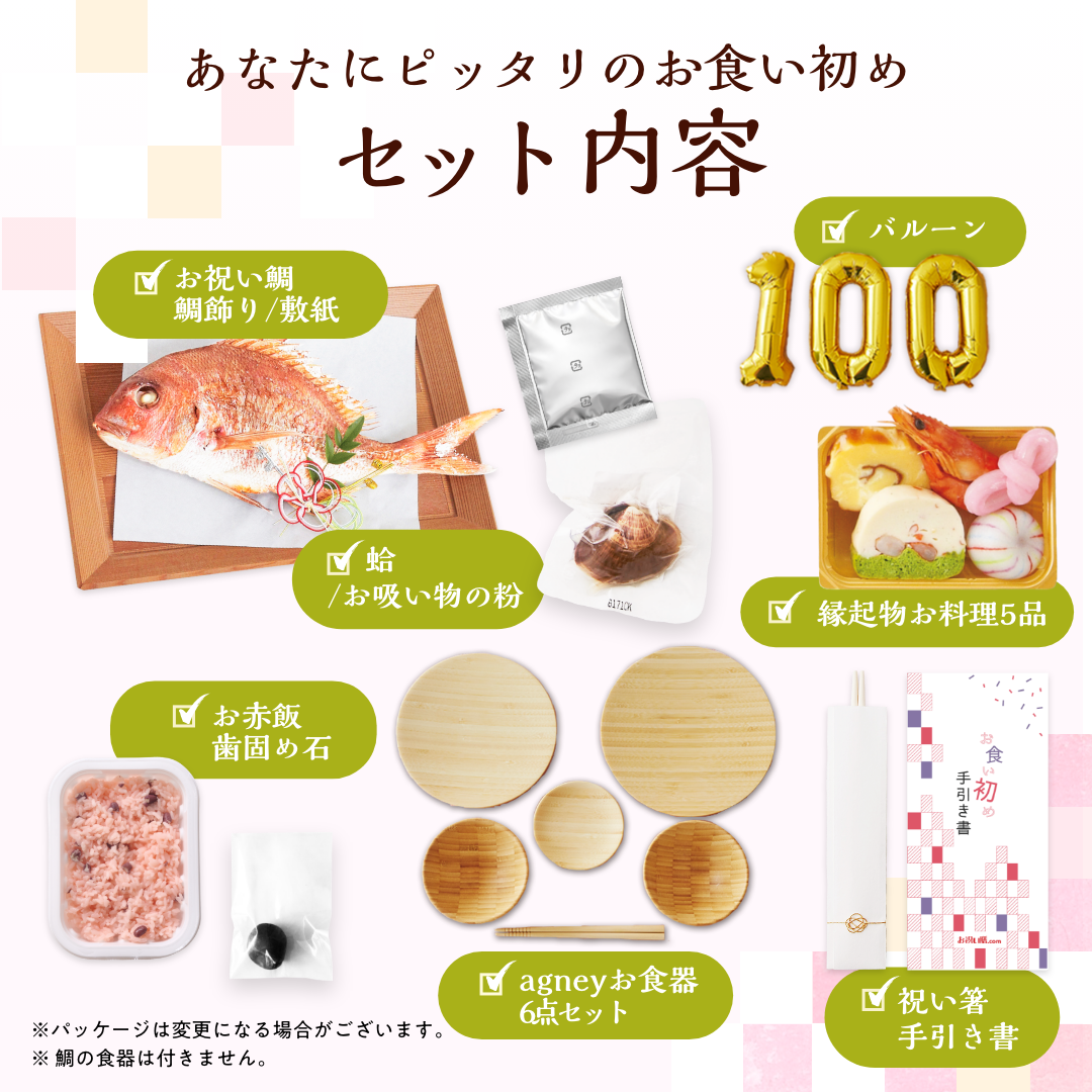儀式の手順などを詳しく解説した手引き書も付いているので、初めてのお食い初めでも安心です。