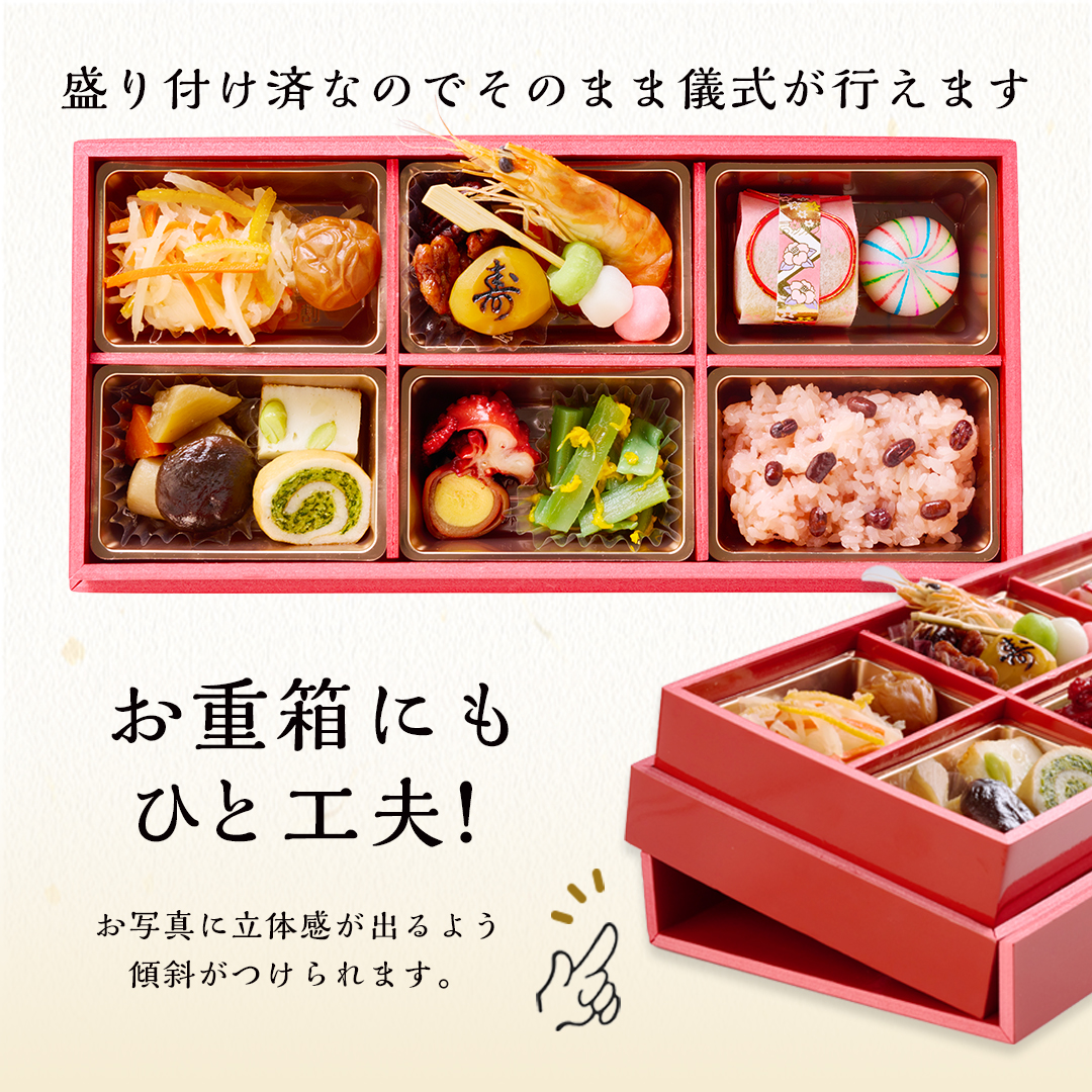 記念撮影の際、お写真に立体感がでるよう、お重にひと工夫しております。