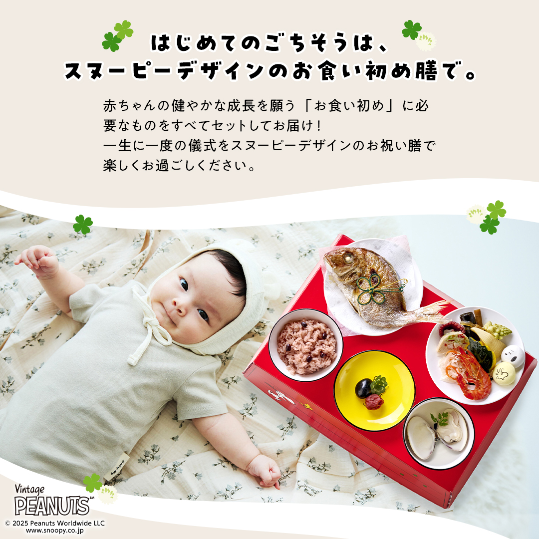 はじめてのごちそうは、スヌーピーデザインのお食い初め膳で。