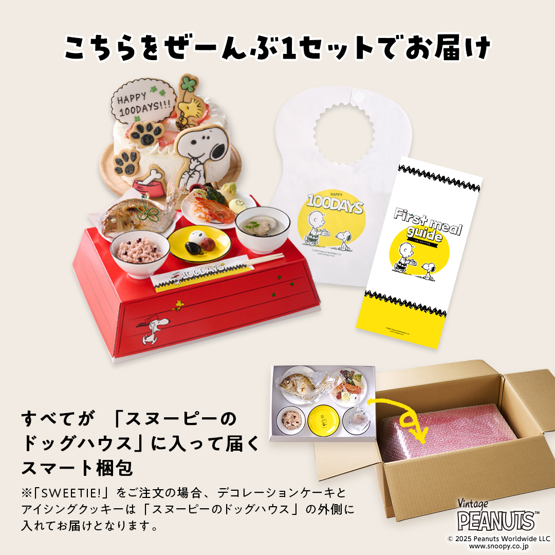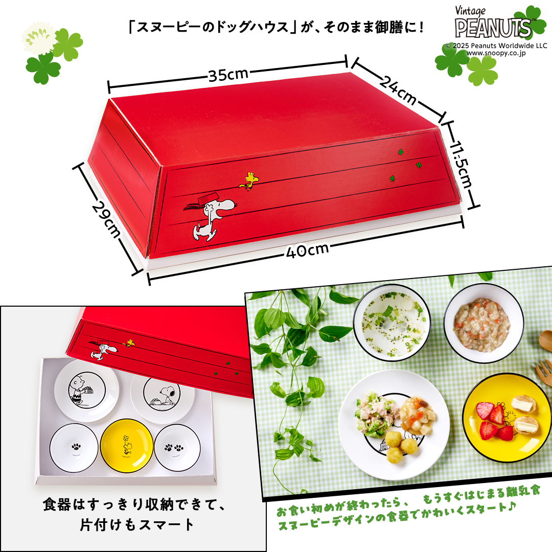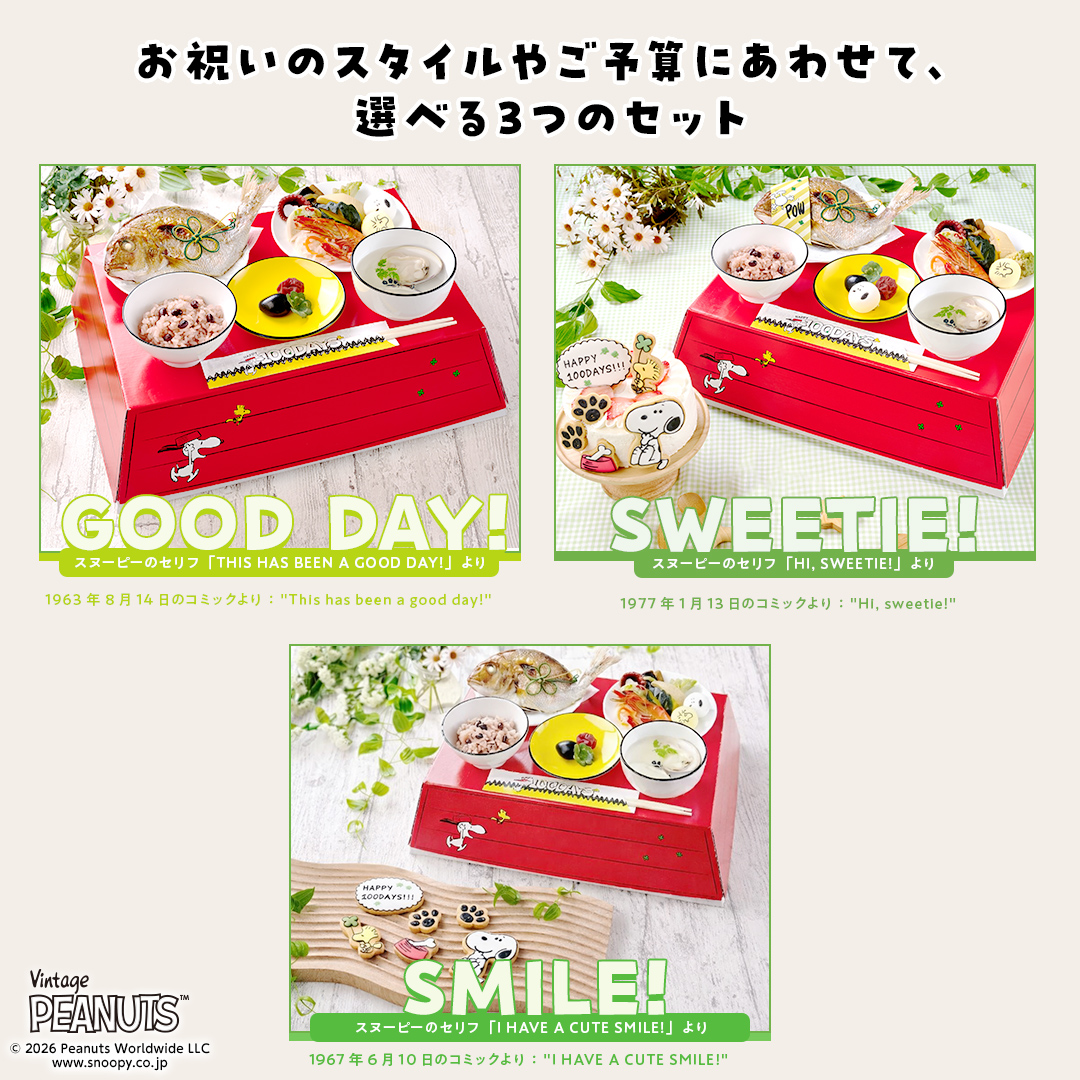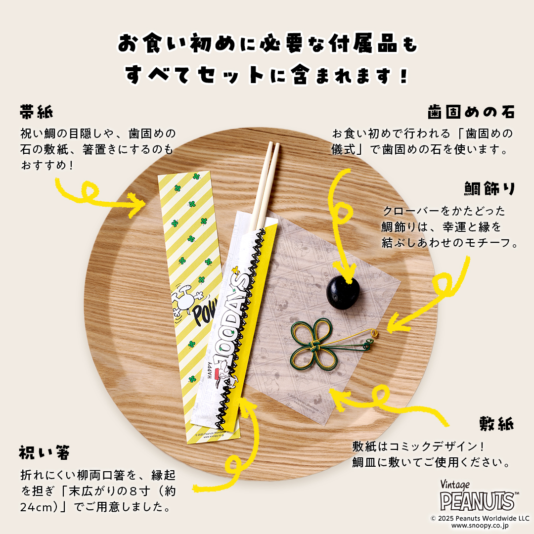 一生に一度の儀式をスヌーピーデザインのお祝い膳で楽しくお過ごしください。