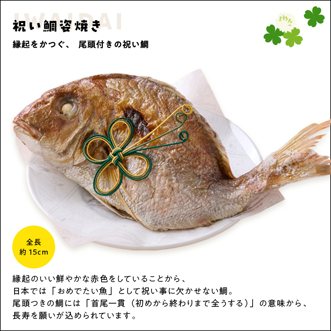 | 鯛 | 真鯛、塩(※季節や漁獲量によっては異なる調味料[酒、醤油、穀物酢、ベニコウジ色素、(原材料の一部に大豆、小麦を含む)]を使用する場合がございます) |