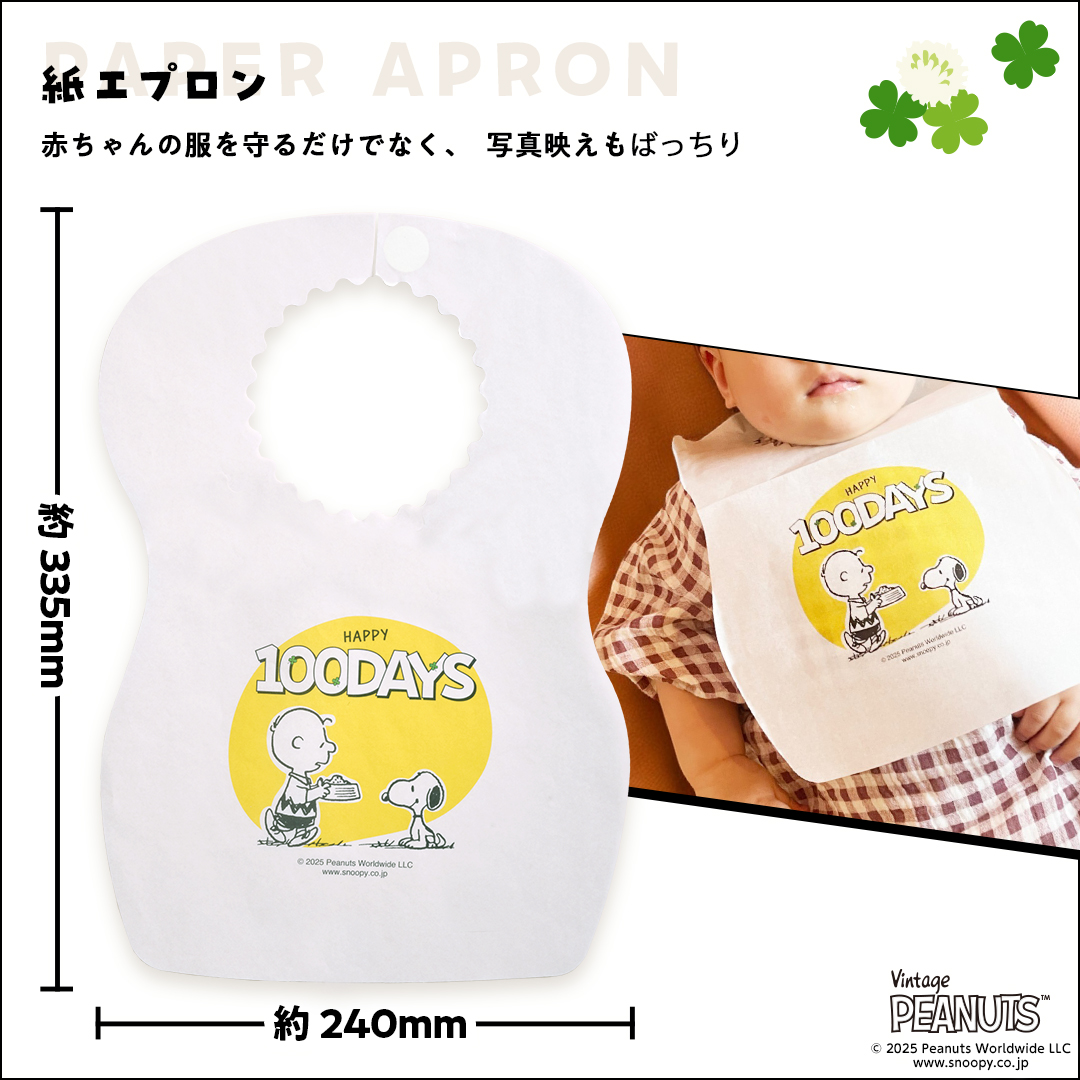 特別な一日を、もっと可愛らしく演出してくれるスヌーピーデザインの紙エプロン。